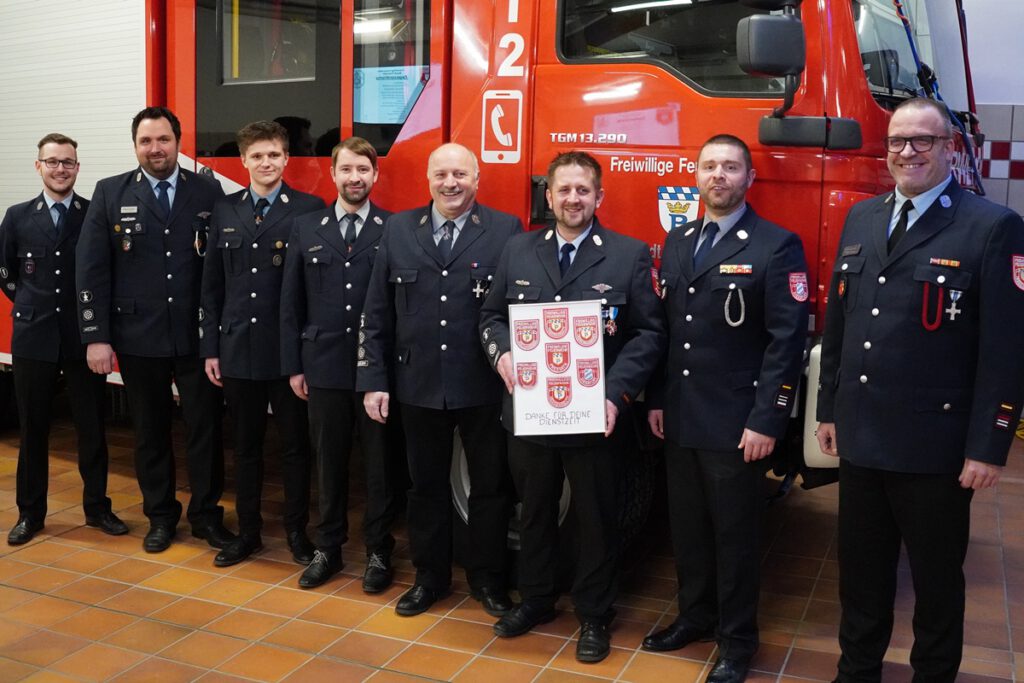 Kneidl prägte die Feuerwehr Pressath über insgesamt 18 Jahre in der Führungsriege – zunächst sechs Jahre als stellvertretender Kommandant, anschließend zwölf Jahre als Kommandant. In seinen Abschiedsworten zeigte er sich dankbar und bewegt: „Heute stehe ich hier mit großer Dankbarkeit und auch großer Demut.“ Er blickte auf viele schöne, aber auch schwere Momente zurück. Besonders ein Einsatz blieb ihm stets präsent: ein schwerer Verkehrsunfall im November 2018, bei dem ein junger Mann schwer verletzt aus einem Wrack befreit wurde. Dieser bedankte sich später persönlich bei der Feuerwehr Pressath und war zur Überraschung vieler auch bei Kneidls Verabschiedung anwesend.