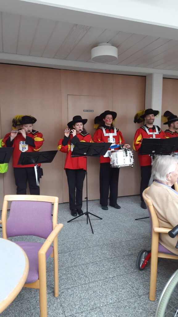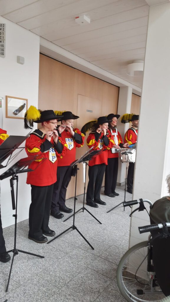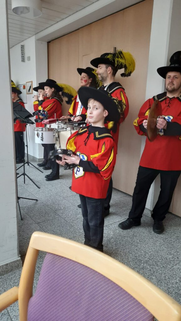 Am Samstag, den 07.02.2026, gab es einen Auftritt unseres Spielmannszugs im Pressather Seniorenheim. Die Narrenzeit als Anlass nehmend brachten die Spielleute mit ihrem Faschingsständchen beste Laune mit und übertrugen die fröhliche Stimmung auf die Bewohnerinnen und Bewohner. Auch das Pflegepersonal lies sich anstecken und so sangen alle gemeinsam zu den Klängen des Spielmannszugs. Es war uns eine Freude, den Menschen eine schöne Zeit bescheren zu können!