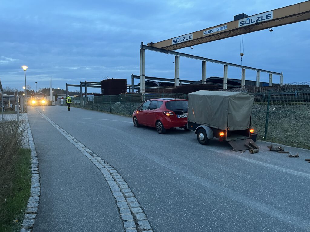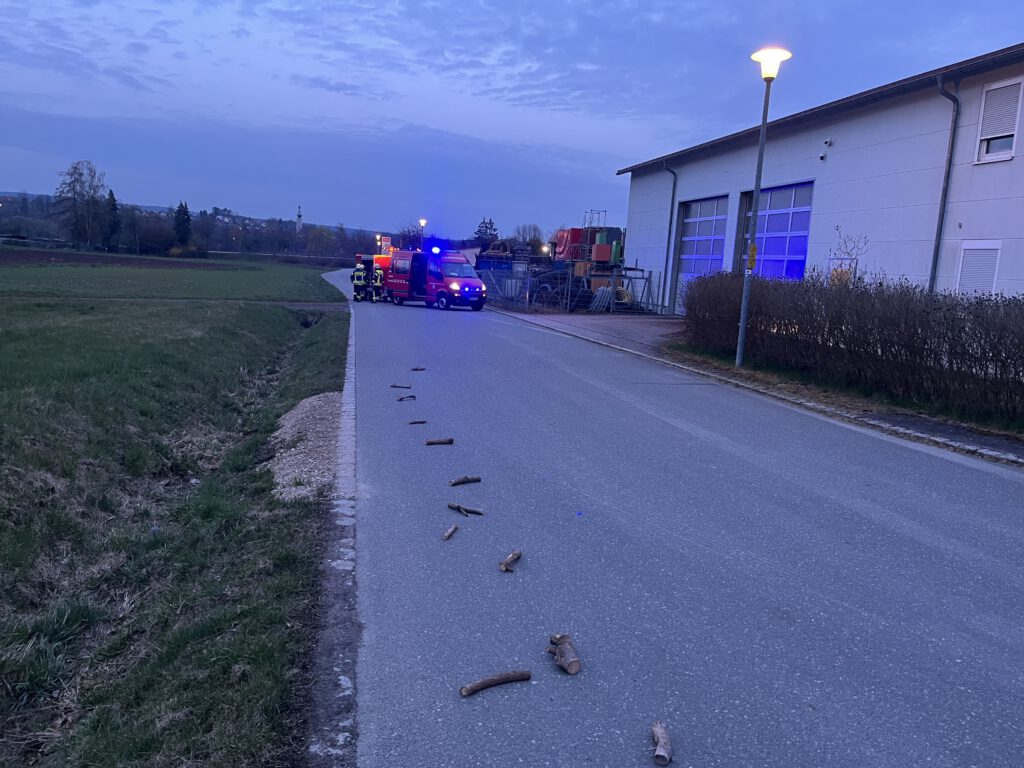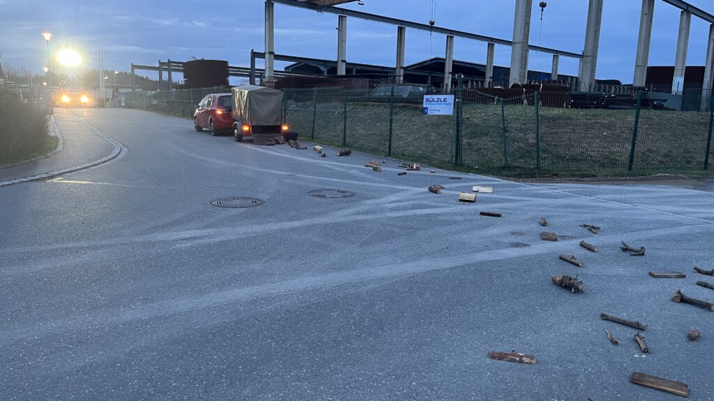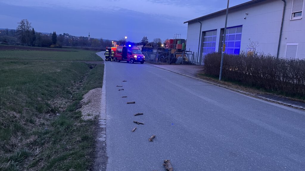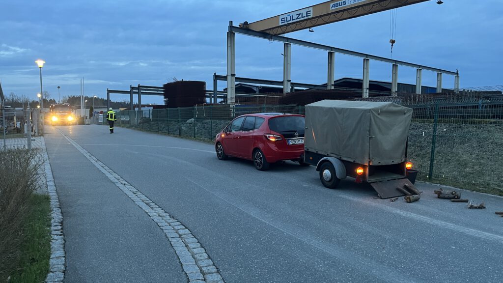 Im Anschluss folgte eine praktische Übung: Angenommen wurde ein THL-Einsatz, bei dem ein PKW mit Anhänger seine Ladung verloren hatte. Der Übungsauftrag umfasste die Absicherung und Ausleuchtung der Einsatzstelle sowie die Einrichtung einer einseitigen Verkehrslenkung.